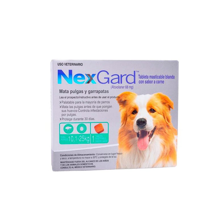 NexGard es un producto que elimina pulgas, garrapatas y ácaros causantes de la sarna en perros. Es una tableta suave y masticable con sabor a carne que se da mensualmente.
