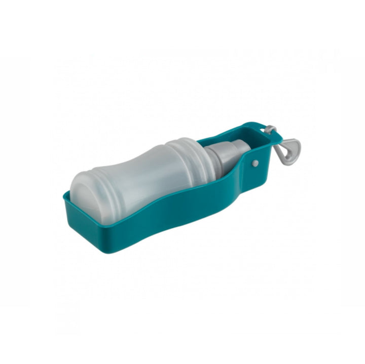 Este bebedero portátil es un producto muy práctico para hidratar a tu perro o gato en todo momento, podrás salir cómodamente con tu mejor amigo sin preocuparte de que pueda pasar sed. Se trata de una botella de plástico unida a otra pieza, que sirve al mismo tiempo como plato y como estuche para guardarla. Un accesorio para viajar con mascotas, cómodo y práctico.